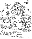 Planse de colorat - fise pentru desenat - Alba ca Zapada si cei sapte pitici